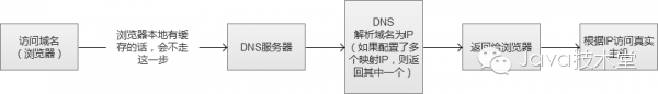 DNS(Domain Name System)负责域名解析的服务,域名url实际上是服务器的别名,实际映射是一个IP地址,解析过程,就是DNS完成域名到IP的映射。而一个域名是可以配置成对应多个IP的。因此,DNS也就可以作为负载均衡服务。