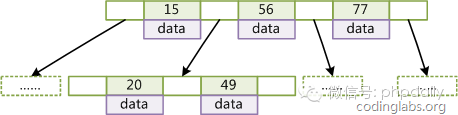 3. 每个非叶子节点由n-1个key和n个指针组成,其中d<=n<=2d。