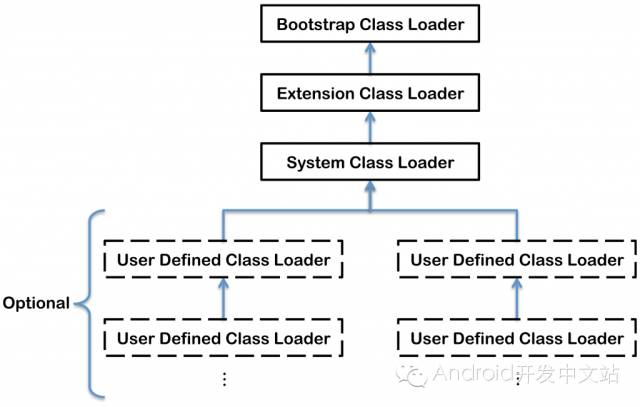 JVM 中有多个类加载器,分饰不同的角色。每个类加载器由它的父加载器加载。bootstrap 加载器除外,它是所有最顶层的类加载器。
