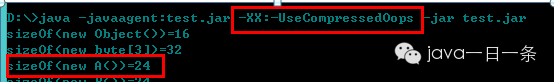 对象占用的内存大小收到VM参数UseCompressedOops的影响。