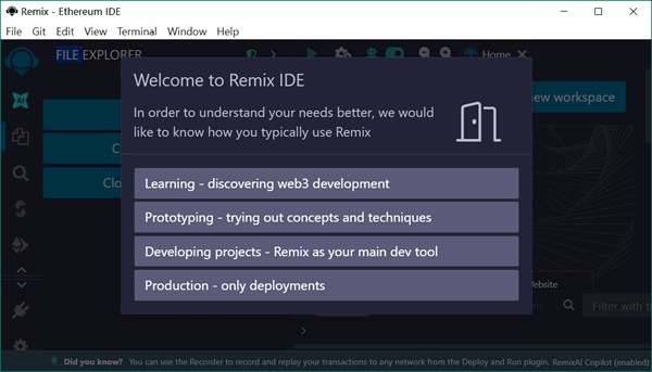 笔者使用的是 Windows 系统,因此这里以 Windows 为例,展示 Remix 的安装过程:1) 从网盘获得 Remix-Desktop-Setup-1.1.5.exe,双击启动,点击下一步: