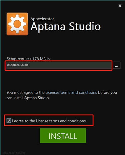 2) 自定义安装路径,这里建议安装到非系统盘,比如上图的 D 盘,然后勾选“ I agree...”,点击 INSTALL:
