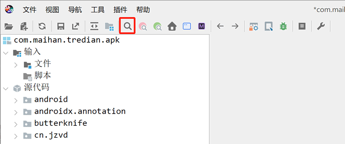 - Jadx 会自动加载并反编译 APK 文件,显示其目录结构和 Java 源代码。