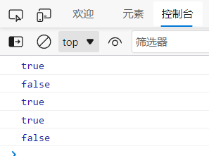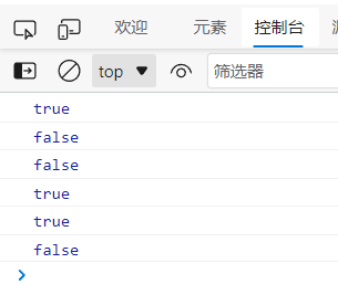 console.log(1=="1"); console.log(1==="1"); console.log(1<2); console.log(1<=2); console.log(1!=1);![]()