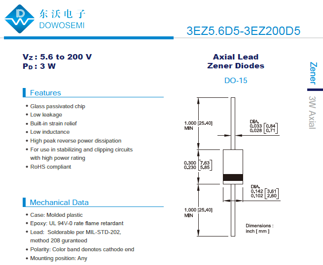 1)DO-15封装,3EZ5.6D5-3EZ200D5