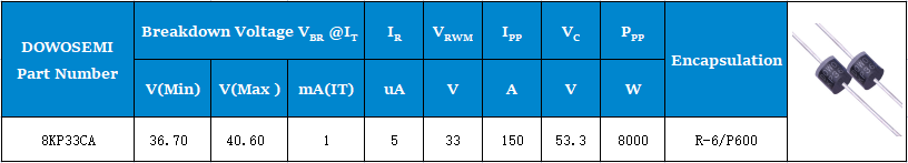 当然,这些都是一些基本知识。客户往往更多关注的是TVS二极管参数、选型、质量、交期、现货、价格、样品等方面的知识。比如8KP33CA瞬态抑制二极管参数、是否能通过车规测试、是否有现货、量产交期、价格、能否申请样品测试,都可直接咨询东沃电子DOWOSEMI!