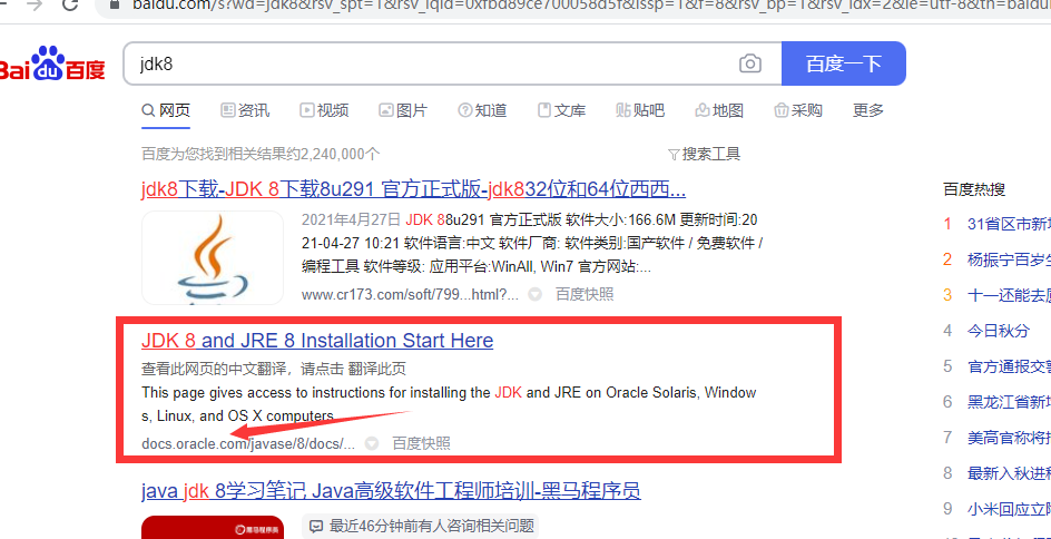 下载jdk安装包,百度jdk,找到oracle的网址,点击进入,