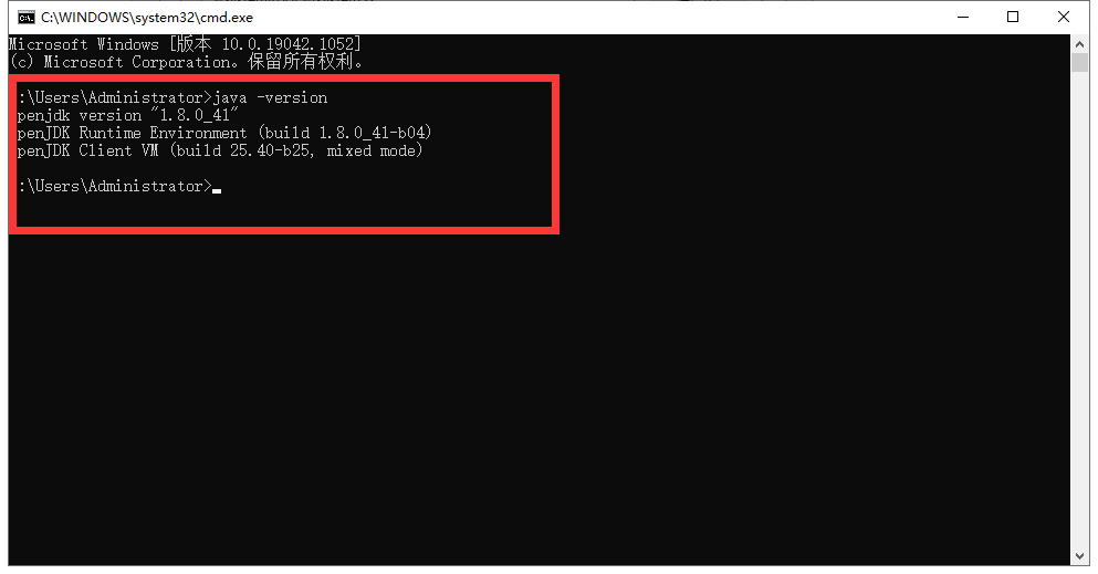 打开windows命令行,输入cmd, 命令行输入java -version,打印出java版本信息,java环境配置成功