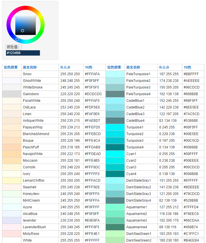 RGB颜色对照表网:http://tool.oschina.net/commons?type=3