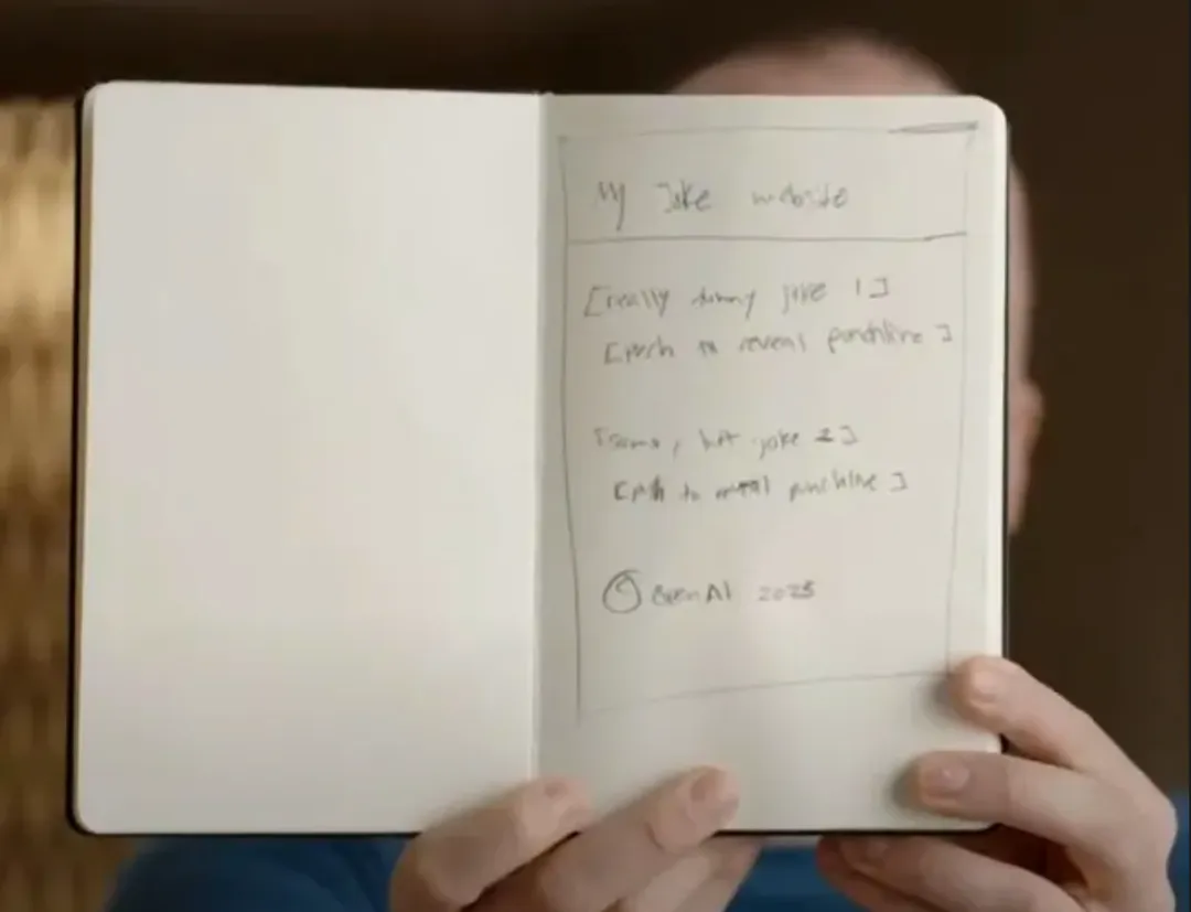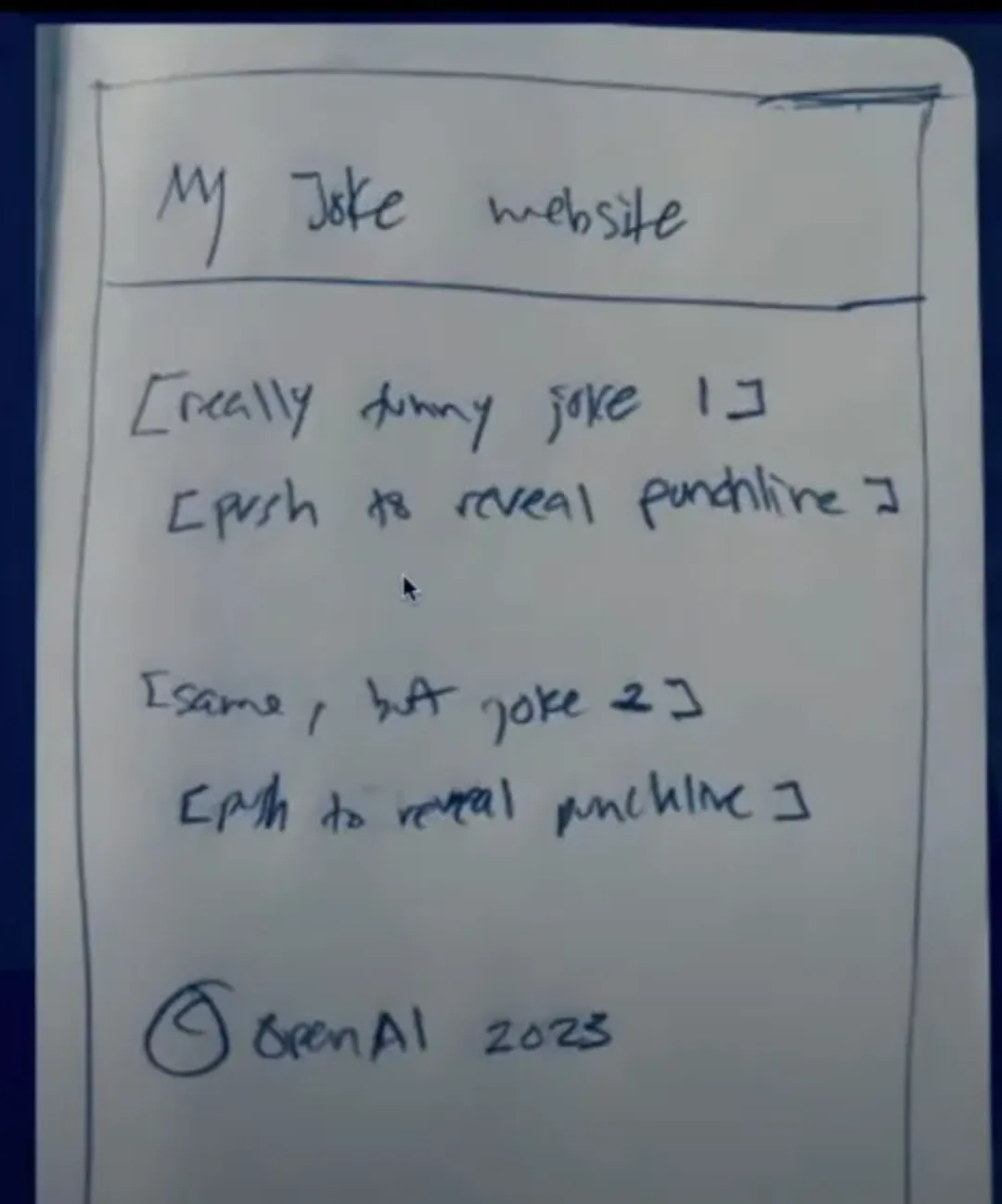 可以笔记本上随便画一个自己网站的草图,然后 GPT 就给你生成了对应的网站: