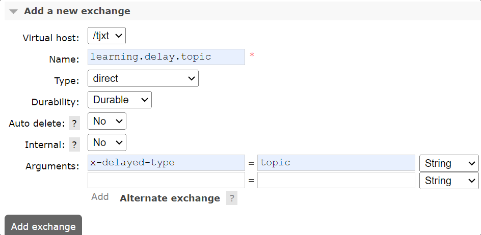 exchange = @Exchange(value = MqConstants.Exchange.LEARNING_DELAY_EXCHANGE,type = ExchangeTypes.TOPIC,delayed = "true"),