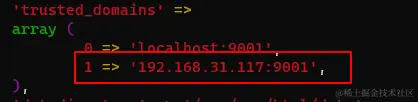 config.php后,在trusted_domains => array节点下添加局域网ip地址