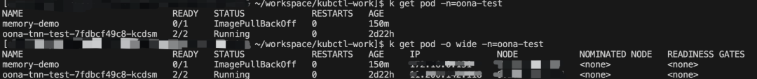 于是,就可以开心地查看 Pod: kubectl get pod [-o wide] -n=oona-test ,或者查看 Deployment: kubectl get deployment [-o wide] -n=oona-test 。
