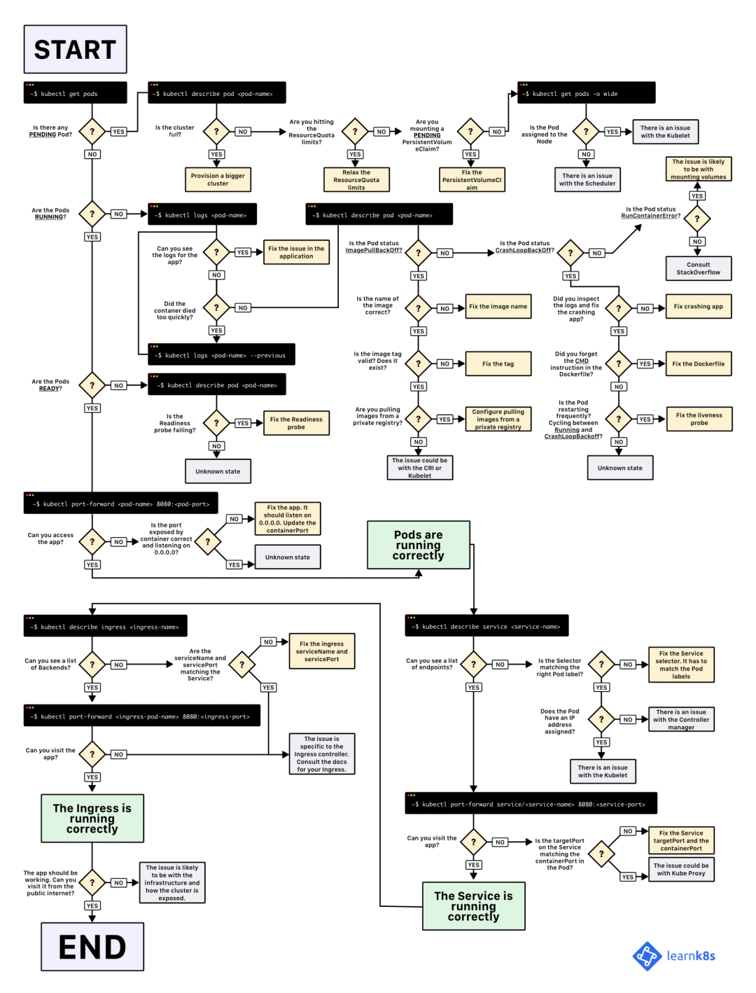 首先,祭出笔者最爱的一张 K8S 排查手册,来自博客《Kubernetes Deployment 故障排除图解指南》: