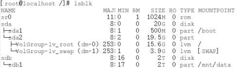 以sdb1为例,首先使用lsblk命令可以清晰的获取全局的块设备布局