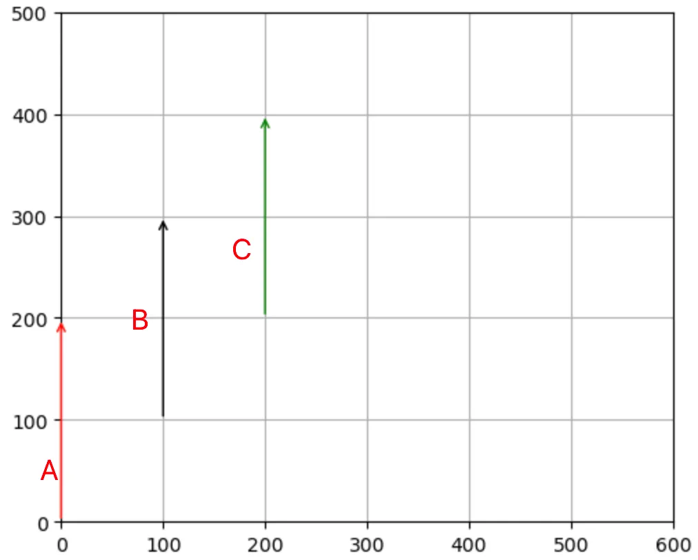 图中向量A 、向量B、向量C 是一样的。 针对这三个向量,都可以用(0,200)表示,即从(0,0)到(0,200)。 即二维空间,用(x,y)表示。 三维空间,用(x,y,z)表示。四维空间,用(x,y,z,w)表示。在着色器代码中,通常使用vec2、vec3、vec4来表示向量。