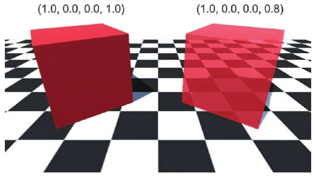 左边立方体的alpha值为1,右边立方体的alpha值为0.8,可以看到右边的立方体颜色更透明。