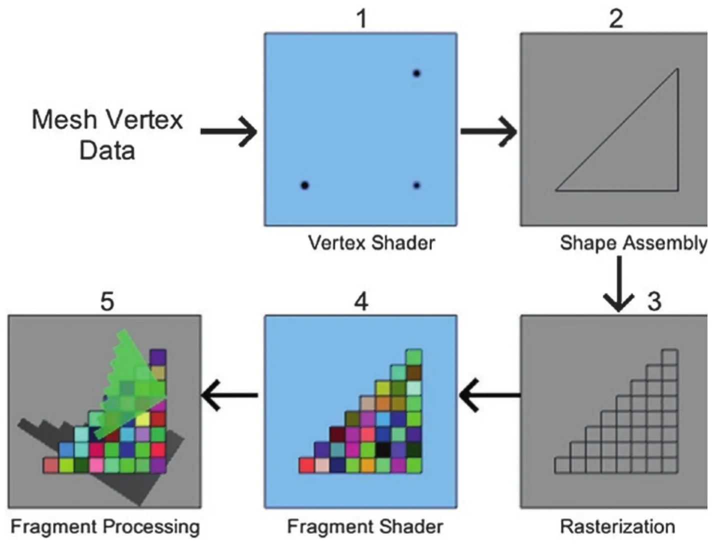 渲染管线是一个复杂的过程,它将顶点数据转换为像素数据,然后将像素数据输出到屏幕上。渲染管线通常由以下几个步骤组成:
