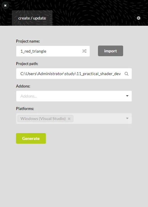 打开projectGenerator/projectGenerator.exe,按照提示创建项目。 -