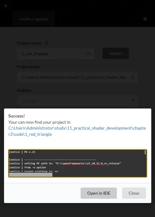 代码被编写为高度跨兼容性。目前,openFrameworks支持五个操作系统(Windows、OSX、Linux、iOS、Android)和四个集成开发环境(XCode、Code::Blocks、Visual Studio 和 Eclipse)。API 的设计力求简洁且易于掌握。 openFrameworks 以 MIT 许可证发布。这赋予了每个人在任何环境下使用 openFrameworks 的自由:商业或非商业、公共或私人、开源或闭源。虽然许多 openFrameworks 用户以类似自由的方式将自己的作品回馈给社区,但这并非强制要求。 简而言之,openFrameworks 是一个让用代码创作变得更加容易的工具。 我们的关注点在于OpenGL开发,为了简化学习,将学习重点放在OpenGL上,因此使用openFrameworks来作为我们的开发环境。 原书使用的是openFrameWorks v0.10.0 版本