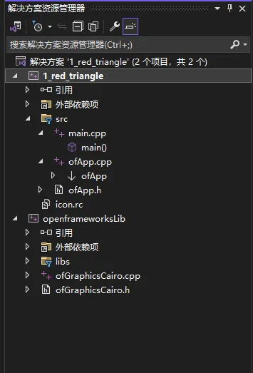 解决方案中将包含2个项目,我们目前的重点在main.cpp和ofApp.cpp