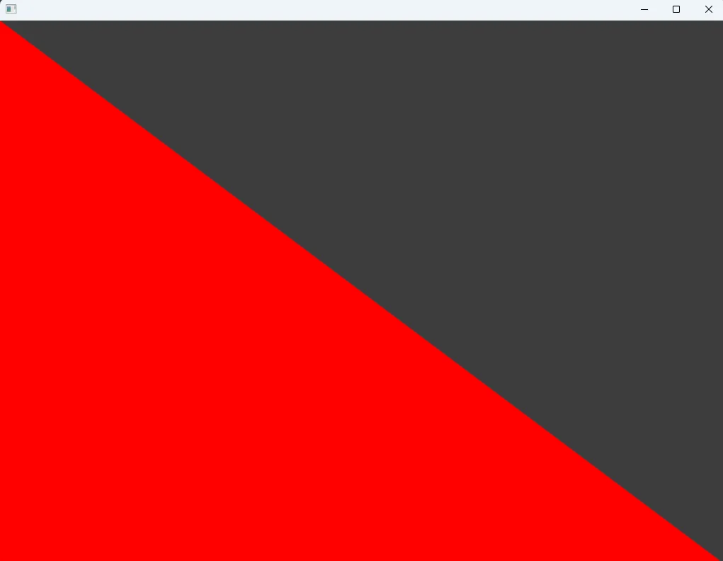 片元着色器中,我们只定义了一个输出变量 color,其类型为 vec4,表示4个浮点数分量,分别表示RGBA颜色值。其值设置为红色,因此,每个片元都会被渲染为红色。