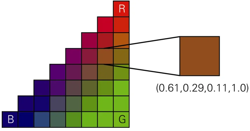 顶点的颜色信息用 glm::vec4 类型来表示,它定义了顶点的 RGBA 颜色值。