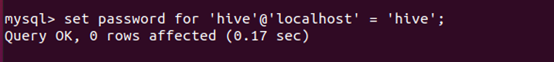 grant all on *.* to hive@localhost identified by 'hive';