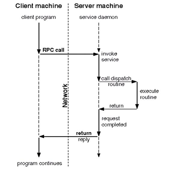 - 客户端调用进程接收答复信息,获得进程结果,然后调用执行继续进行