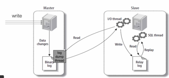 - 主库将所有的写操作记录到binlog日志中并生成一个log dump线程,将binlog日志传给从库的I/O线程