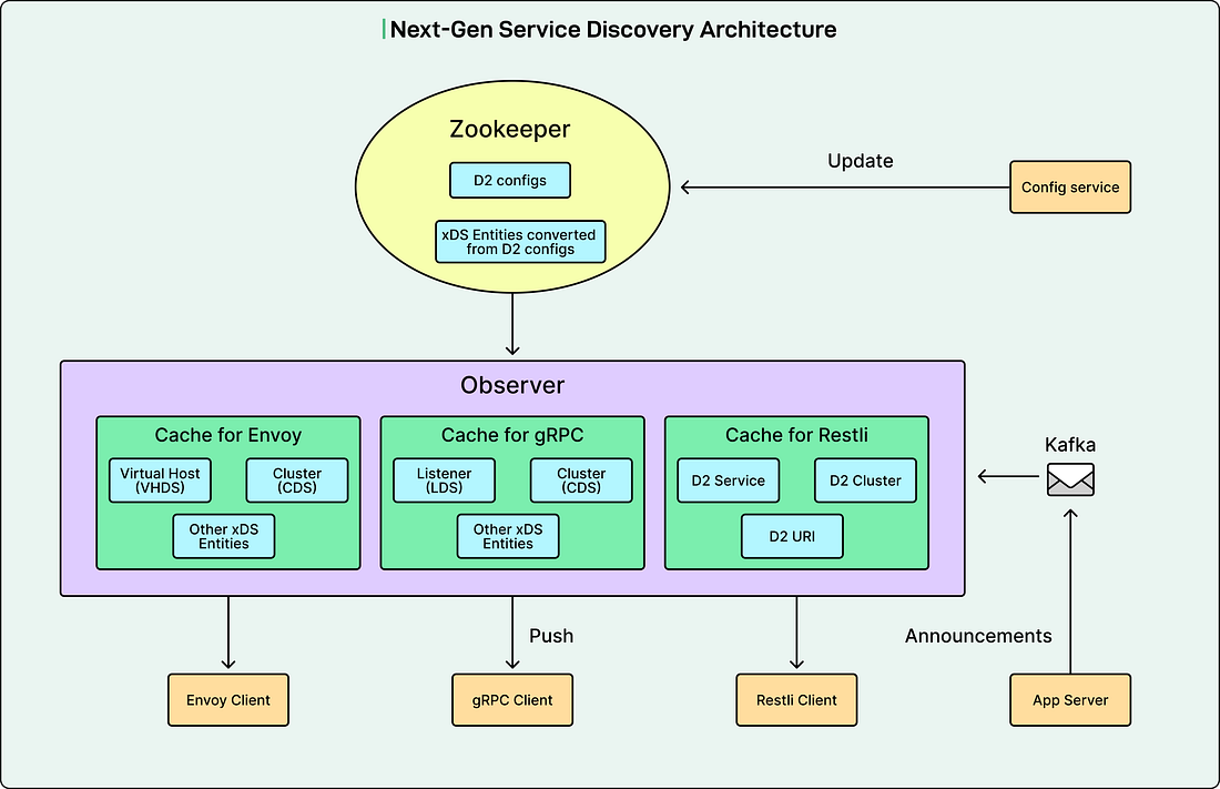 It also created challenges for integrating with new service registries to replace Zookeeper, such as Etcd with Kubernetes, or any new storage system that might have better functionality or performance.