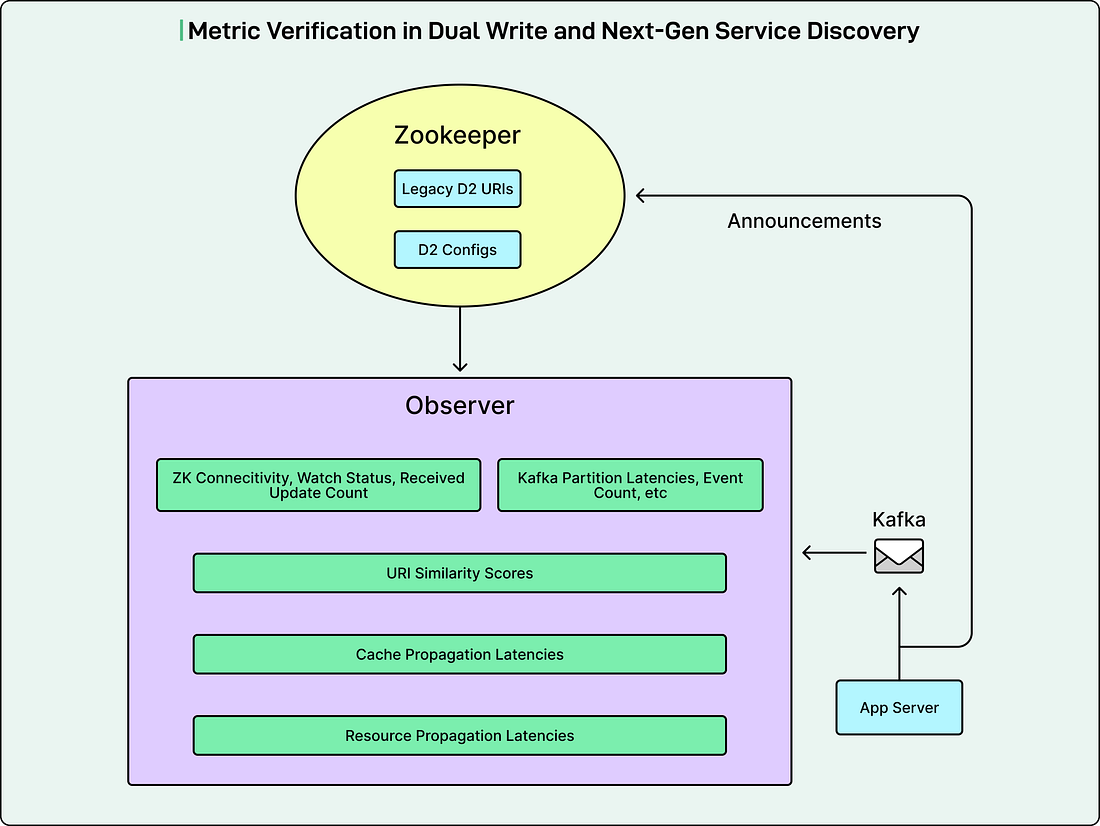 On the application server side, a metric tracked the server announcement mode to accurately determine whether the server was announcing to Zookeeper only, dual write, or only Next-Gen Service Discovery. This allowed LinkedIn to understand if all instances of a server application had fully adopted a new stage.
