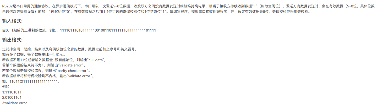 if(s.charAt(i+10)=='0')//奇偶校验位错误