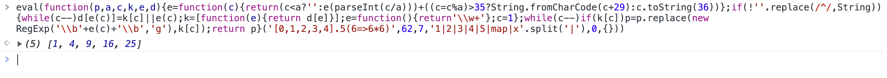 eval('[1,2,3,4,5].map(x=>x*x)')