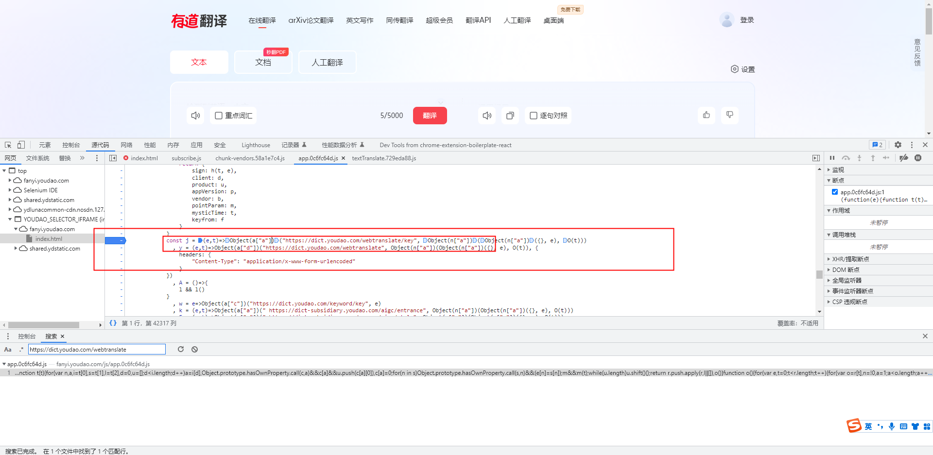 - 我们再次分析我们请求网址所在的哪行代码