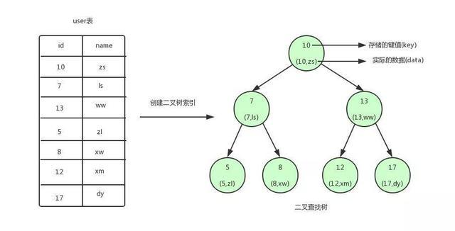 - 对整张表进行排序,放入类似于上图中右边的二叉树结构。