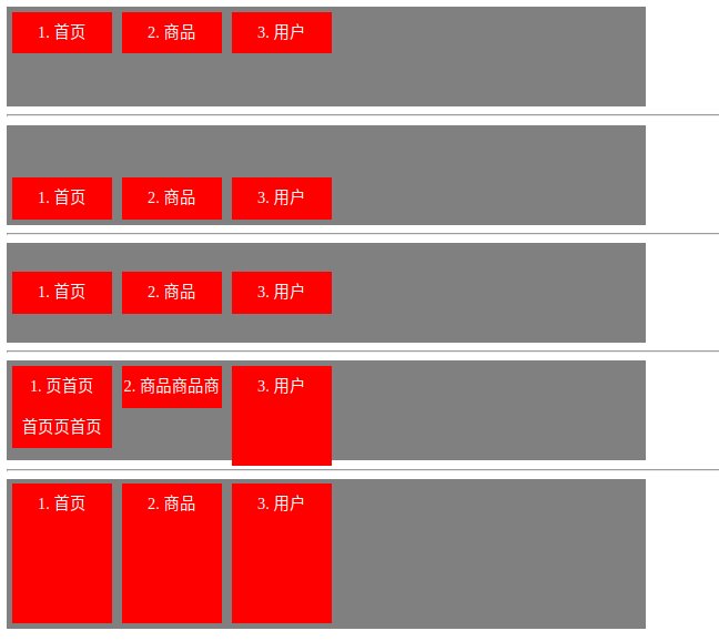 | wrap-reverse | 换行,不压缩flex项目的宽度,第一行在下方。 |
