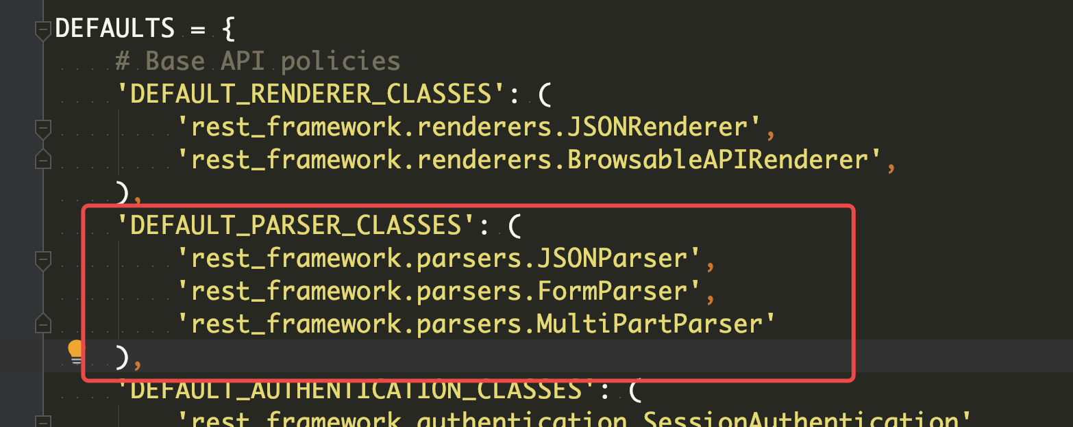 - 如果没有配置解析器,DRF会使用默认的解析器: