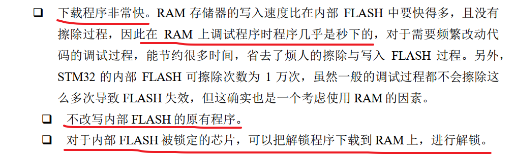 (3)对于内部 FLASH 被锁定的芯片,可以把解锁程序下载到 RAM 上,进行解锁。相对地,把代码下载到 RAM 中调试有如下缺点: