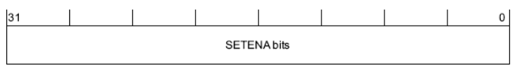 中断使能寄存器共有8个,ISER[0]设置0~31号中断的使能,ISER[1]设置32~63号中断的使能,如此类推。以下以ISER[0]为例:
