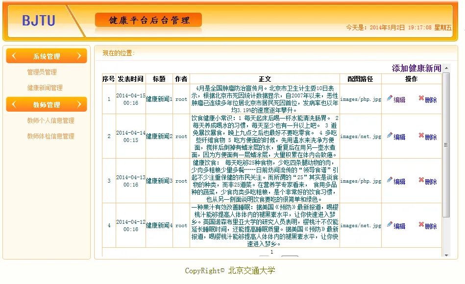 4.管理员管理健康新闻:可以发布或删除新闻。