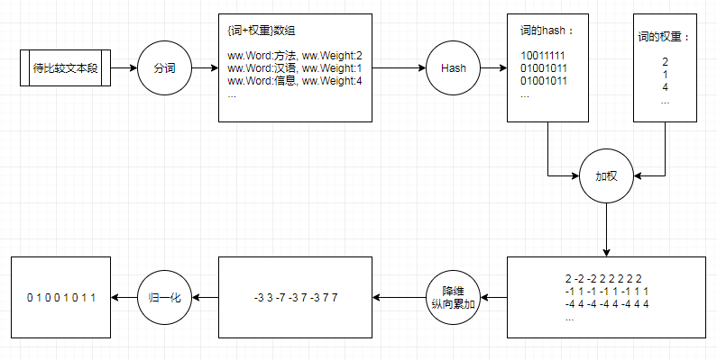 在simhash中处理一个文本的步骤如下:
