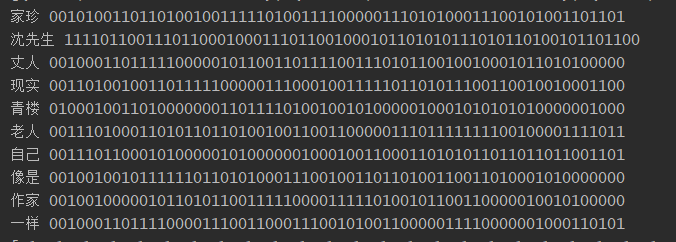 对于每一个得到的词组做hash,将词语表示为到01表示的bit位,需要保证每个hash结果的位数相同,如图中所示,使用的是8bit。