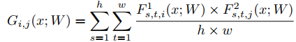 Gij = Feature1的 i 通道和Feature2的 j 通道elem-product后求和
