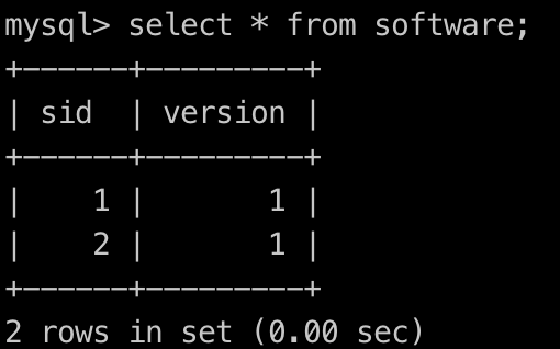 写入一条记录 insert into (sid,version) values (1,1);