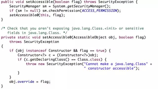 Field这个类是从AccessibleObject集成下来的,而AccessibleObject提供了一个方法,叫做setAccessible,他能让我们改变对于属性的访问控制。
