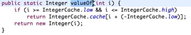 这个函数的参数是一个int,然后如果这个int在IntegerCache的low和high之间,就从IntegerCache里面获取,只有超出这个范围,才新建一个Integer类型。