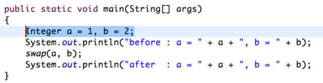 前几天看有人贴了一个java代码的问题,实在有意思,今天拿出来和大家分享分享。题目是这样的:给定两个Integer类型的变量a和b,要求实现一个函数swap,交换他们的值。代码如下: