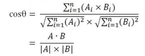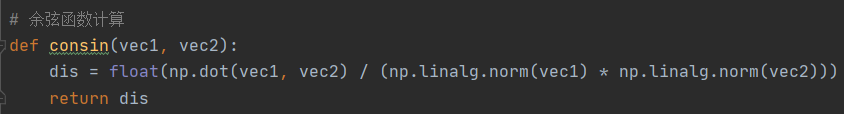 通过利用numpy中的np.dot()(计算向量点积),np.linalg.norm()(计算平方和开根号),利用余弦函数表达式计算出重复率。