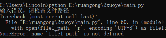 在这次程序实现中,我所考虑的最容易出现的异常,就是在输入路径的时候路径输入错误。为此我做了如下的异常处理